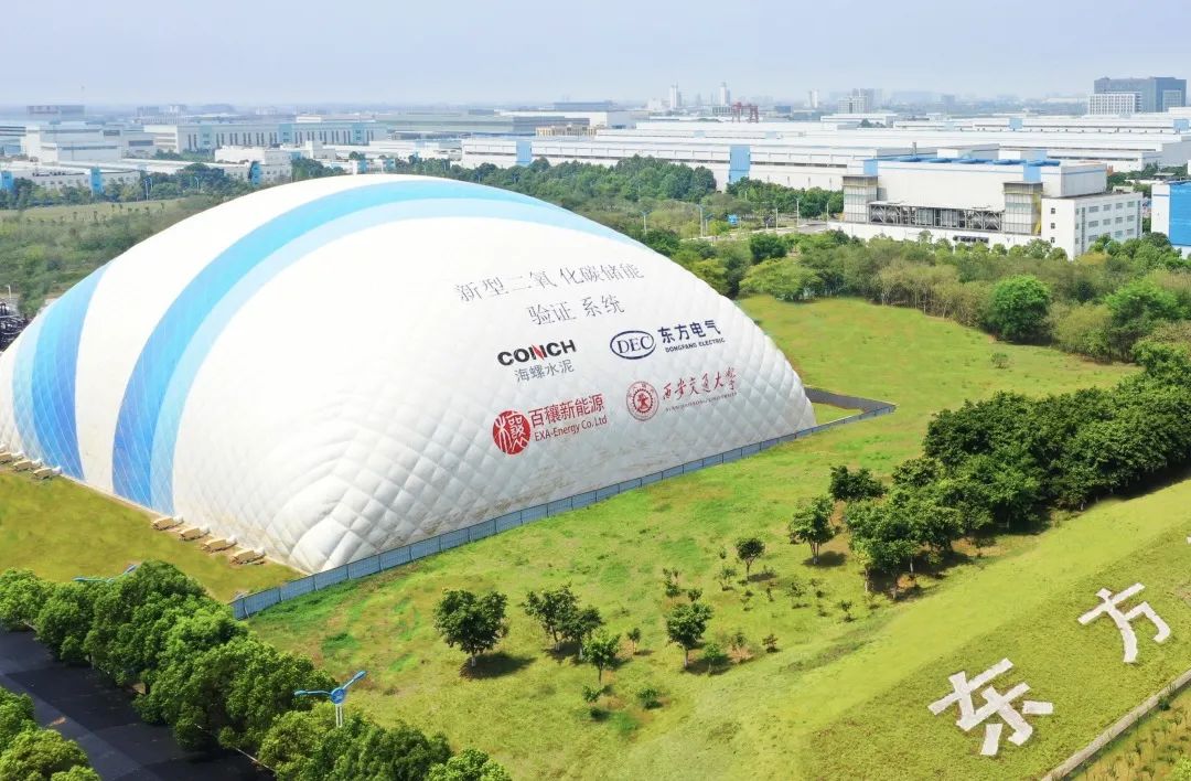 眼光望向6731顶级娱乐集团东方汽轮机有限公司厂区东南偏向,,,,,,,,一个蓝白相间的“小山包”格外醒目,,,,,,,,这里正是东方汽轮机有限公司打造的全球首个“二氧化碳+飞轮储能”树模项目。。。。。