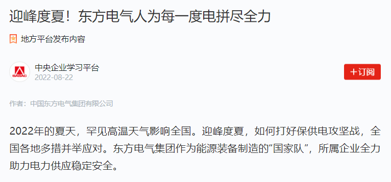 2022年的炎天 ,,,,, ,,有数高温天气影响天下。。。 。。迎峰度夏 ,,,,, ,,怎样打好保供电攻坚战 ,,,,, ,,天下各地多措并举应对。。。 。。6731顶级娱乐集团作为能源装备制造的“国家队” ,,,,, ,,所属企业全力助力电力供应稳固清静。。。 。。