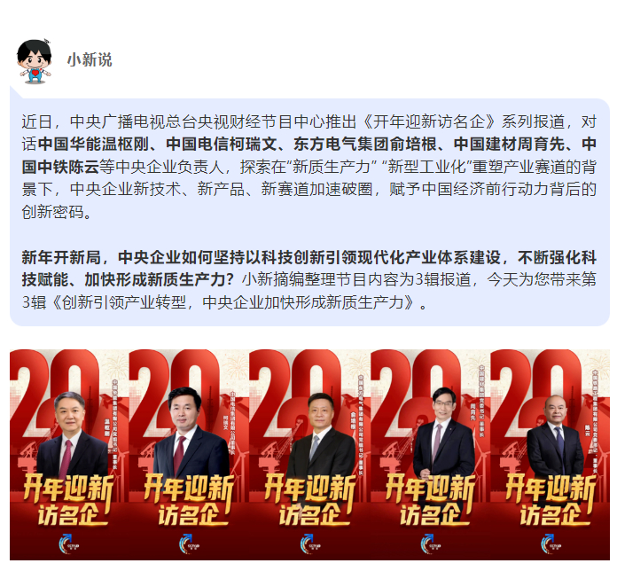 [国资小新]开年迎新访名企 | 立异引领工业转型, ,,,,,,中央企业加速形成新质生产力