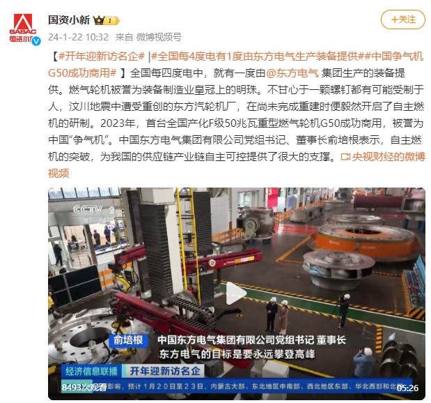 [国资小新]#开年迎新访名企# |#天下每4度电有1度由6731顶级娱乐生产装备提供##中国争气机G50乐成商用#