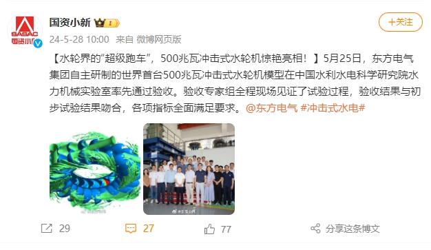 [国资小新]水轮界的“超等跑车”,,,,,,500兆瓦攻击式水轮机惊艳亮相!