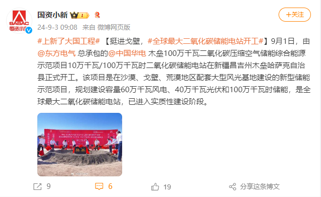 [国资小新]#上新了大国工程# 【挺进沙漠,,,,,#全球最大二氧化碳储能电站开工#】