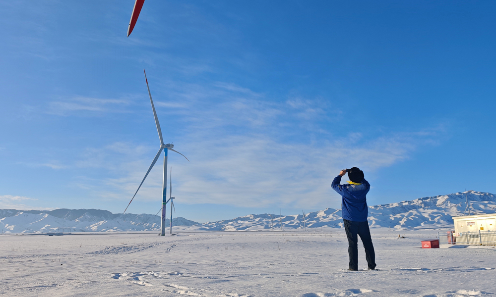 在新疆伊犁汇能73团风场,,,,,,,,6731顶级娱乐集团风电装置调试工程师在开展风场现场的风机叶片外观例行巡检。。。。。。。这是确保风机清静稳固运行的要害包管步伐之一,,,,,,,,通过按期巡检,,,,,,,,可以实时发明叶片外貌的潜在问题,,,,,,,,有用确保风机的高效运行,,,,,,,,延伸叶片的使用寿命,,,,,,,,降低运维本钱,,,,,,,,提高风场的整体发电效率和经济效益。。。。。。。