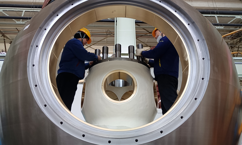 6731顶级娱乐集团事情职员在举行沙坪一级水电项目2号机组转轮装配。。。。。。。2025年以来,,,,,,,,6731顶级娱乐已完成四川、安徽、内蒙古等省多个水电项目机组部件产出。。。。。。。