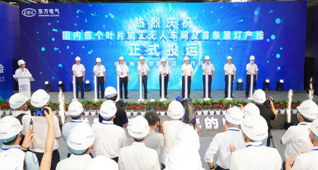 8月25日上午, ,,, ,,,海内首个叶片加工无人车间及首条黑灯产线投运仪式在东方汽轮机举行。。。。。。。。随着一键启动, ,,, ,,,AGV小车、机械人、数控加工中心等一系列智能装备, ,,, ,,,在数据驱动下智慧运行, ,,, ,,,标记着海内首个叶片加工无人车间及首条黑灯产线正式投运, ,,, ,,,这里也是2022天下清洁能源装备大会展示的树模应用场景之一。。。。。。。。