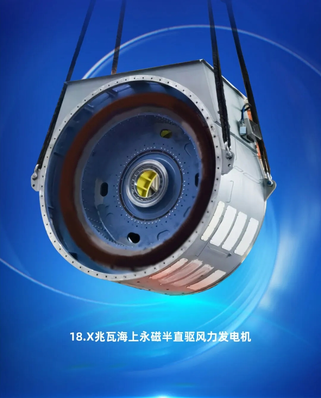 拥有完全自主知识产权的全新一代18兆瓦海上直驱风电机组,,,,,,,,要害部件叶片、发电机、变流器、变压器等完全实现了国产化,,,,,,,,推动了整个风电工业链的协同生长和手艺前进,,,,,,,,该机组获评2023年度央企十大国之重器。。。。。。。