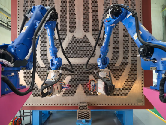 ▲东方汽轮机绿色高效焊接数字化车间-凝汽器管孔自动焊装备