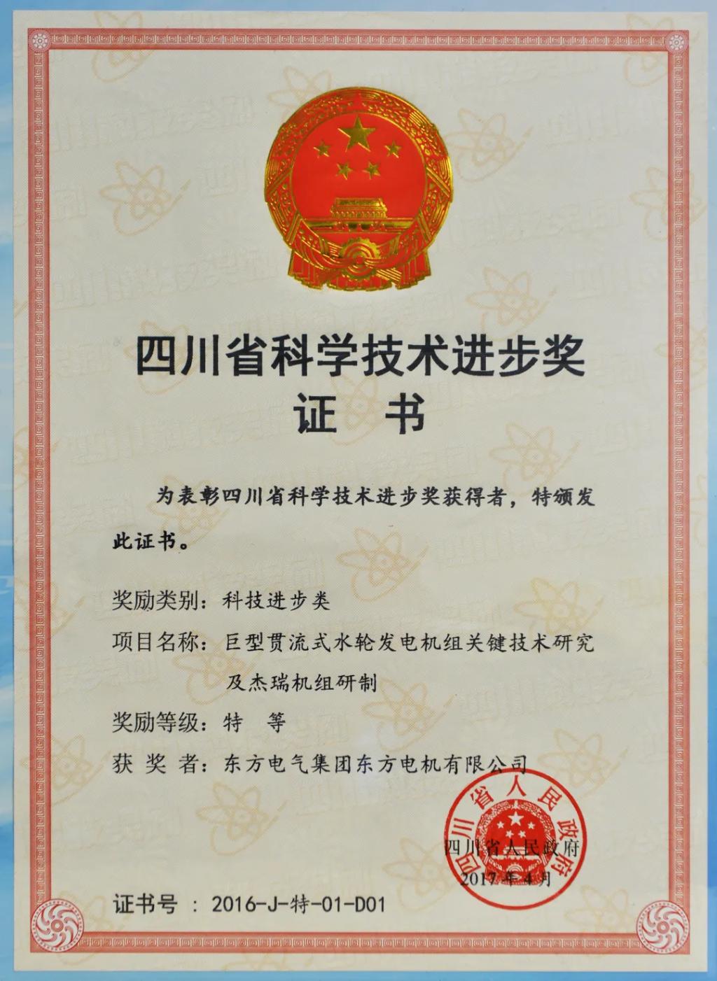 ¡°¾ÞÐ͹áÁ÷ʽˮÂÖ·¢µç»ú×éÒªº¦ÊÖÒÕÑо¿¼°½ÜÈð»ú×éÑÐÖÆ¡±»ñËÄ´¨Ê¡2016Äê¿ÆÑ§ÊÖÒÕǰ½ø½±ÌصȽ±