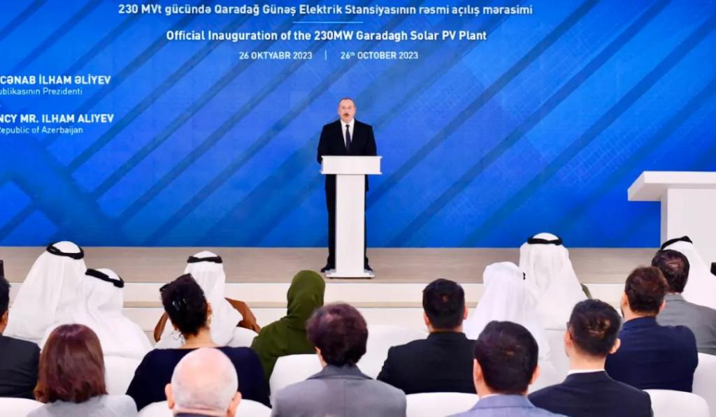 几个月后,,,,,,戈布斯坦光伏电站举行并网投运仪式,,,,,,阿塞拜疆总统阿利耶夫出席仪式:“去年我们加入了该座光伏发电厂的涤讪仪式。。。。。。。。今天,,,,,,我们很是自豪地看到,,,,,,在较短的时间内,,,,,,戈布斯坦的这片空旷区域成为绿色能源的泉源,,,,,,这是一项了不起的成绩。。。。。。。。”