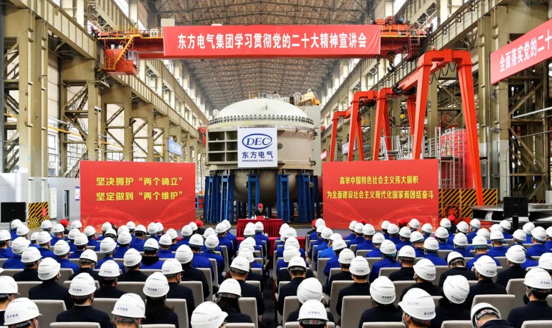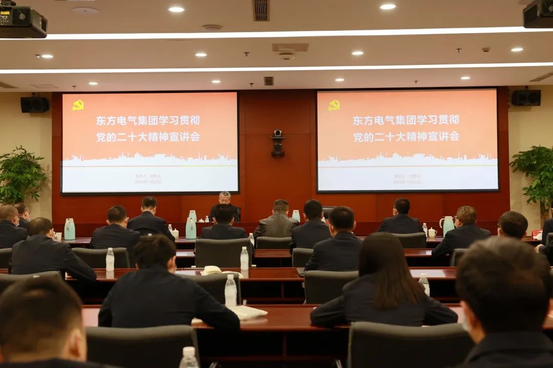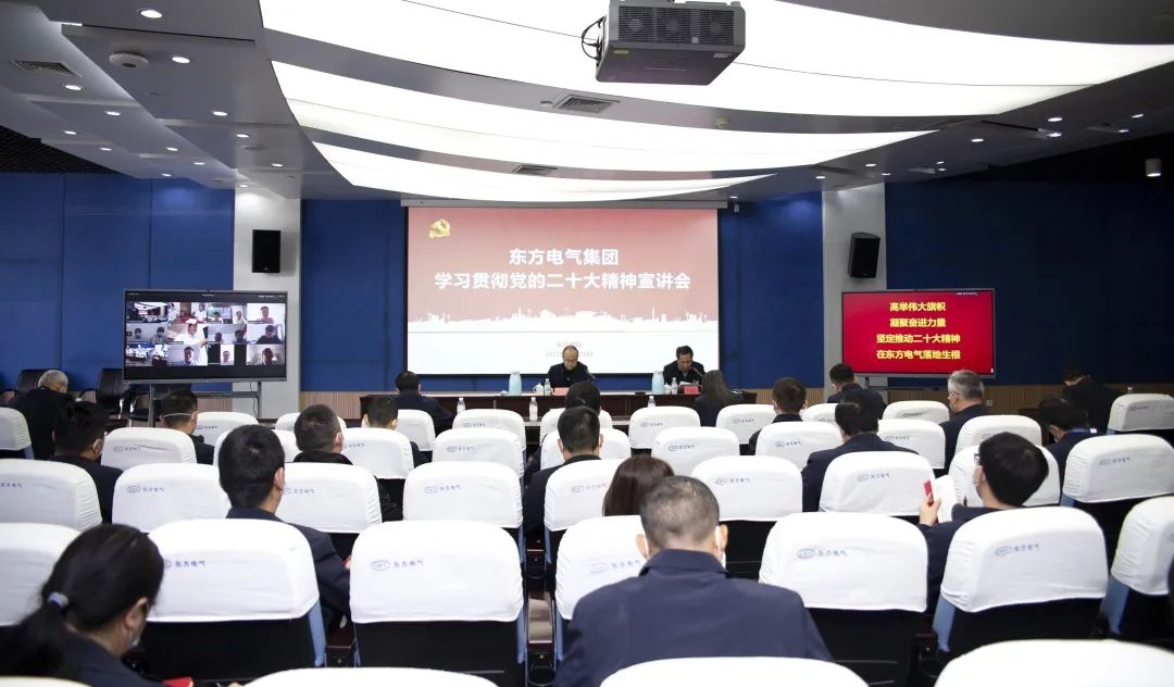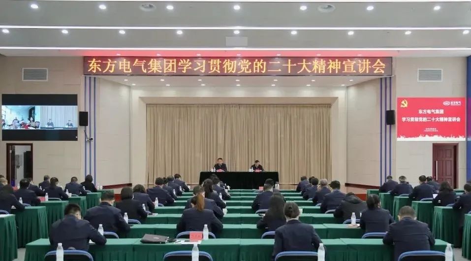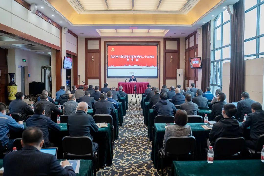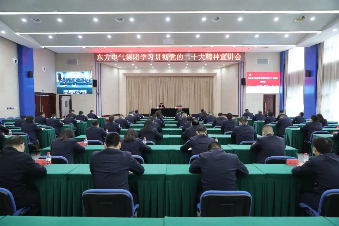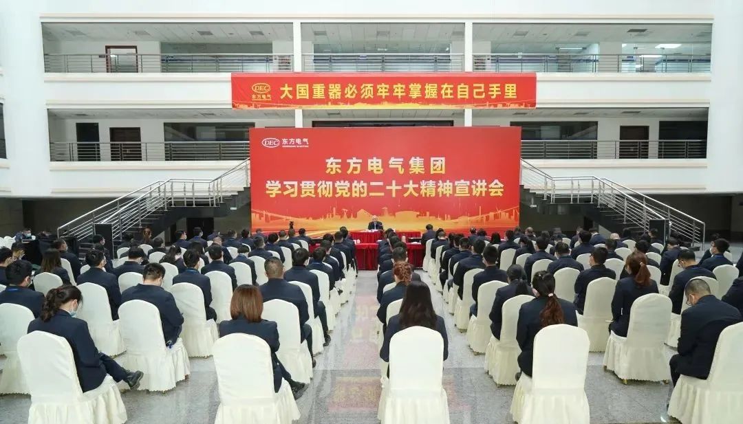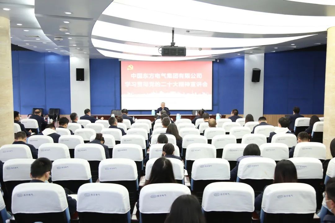 11月10日,,,,,,,,党的二十大代表,,,,,,,,集团公司党组书记、董事长俞培根深入“绿色智造”一线,,,,,,,,为东方电机党员干部职工宣讲党的二十大精神。。。。。俞培根从“七个深刻掌握”对全集团团结现实深入贯彻落实党的二十大精神作出系统安排,,,,,,,,特殊是对东方电机在加速建设天下一流企业、提升科技立异支持作用、加速绿色低碳转型生长、释放企业刷新活力动力、以高质量党建引领包管高质量生长等方面提出明确要求。。。。。