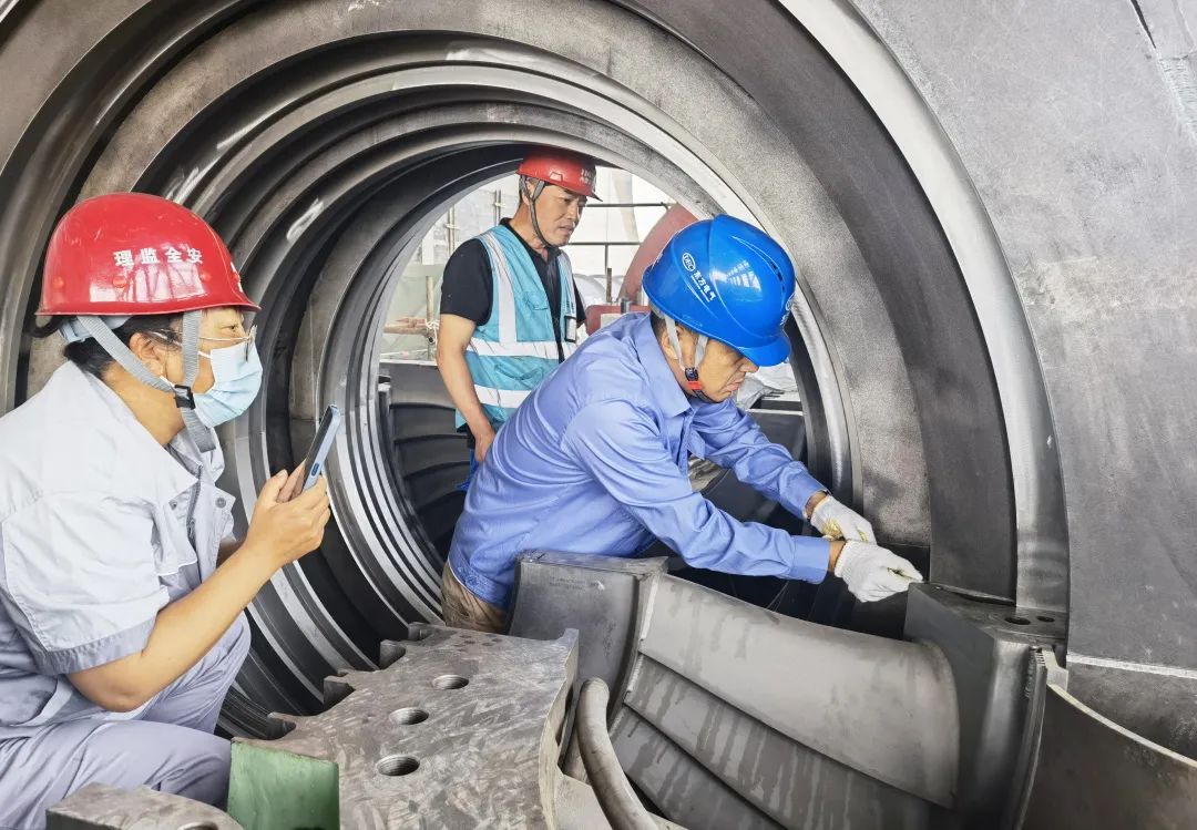 ◆东方汽轮机项目管理中心职工正在与合作单位检查包钢三期1号机