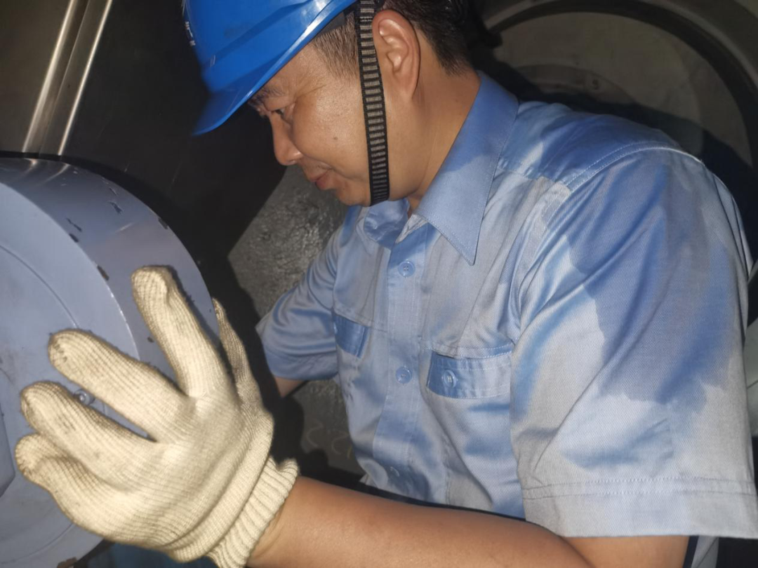 ◆东方锅炉重容车间职工在对汽包筒身内壁环缝批磨