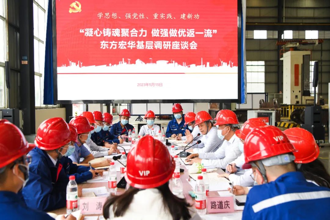 俞培根首先与东方宏华向导班子座谈,,,,,,,调研东方宏华党的建设、生产谋划及主题教育开展情形,,,,,,,并围绕深化刷新、科技立异、能源装备高质量生长等交流钻研。。。。。。。。