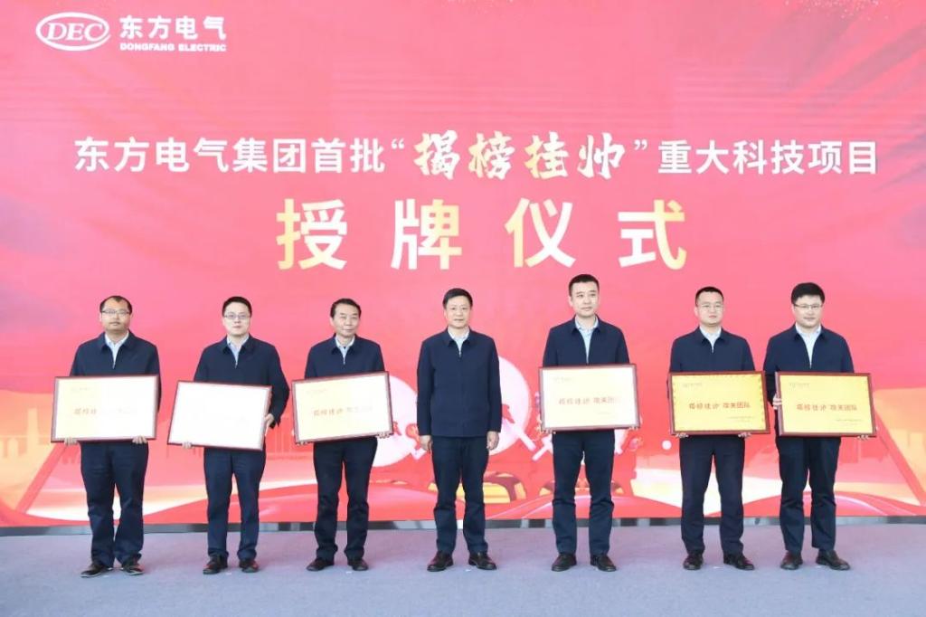▲2022年3月23日,,,,,,,,6731顶级娱乐集团举行首批“揭榜挂帅”重大科技项目授牌及启动仪式,,,,,,,,集团公司党组书记、董事长俞培根向揭榜团队认真人授牌