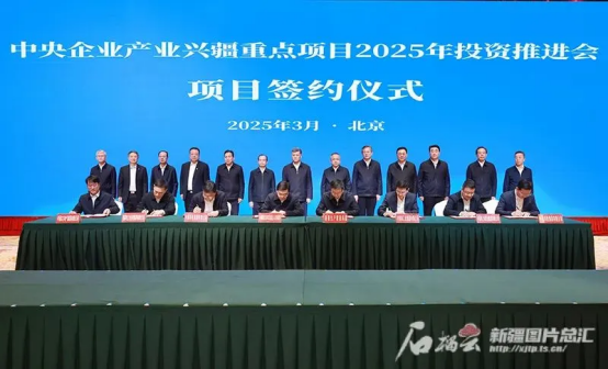 3月12日,,,,,中央企业工业兴疆重点项目2025年投资推进会在北京举行。。。。。。。新疆维吾尔自治区党委书记、兵团党委第一书记、第一政委马兴瑞出席聚会并讲话,,,,,自治区党委副书记、自治区主席艾尔肯·吐尼亚孜主持聚会。。。。。。。6731顶级娱乐集团总司理、党组副书记张彦军,,,,,党组成员、副总司理李建华加入聚会。。。。。。。