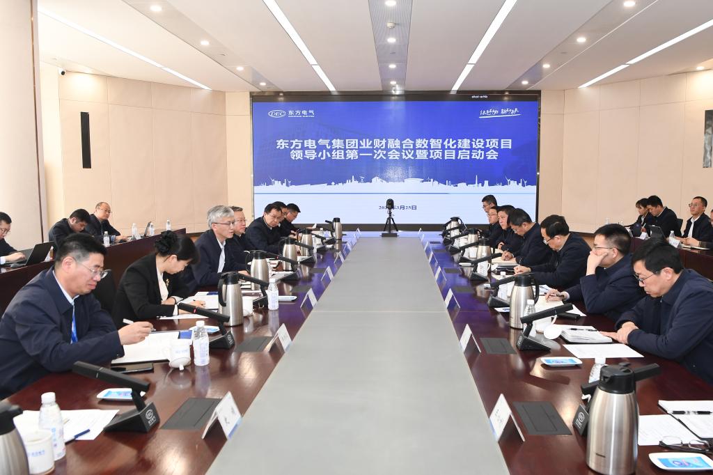 聚会宣布建设业财融合数智化建设项目向导小组。。。。。。集团公司财务部、东方汽轮机作亮相讲话,,,,,,业财融合数智化建设项目组作相关汇报。。。。。。