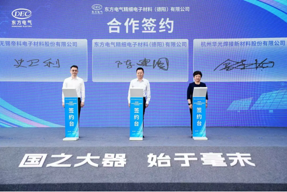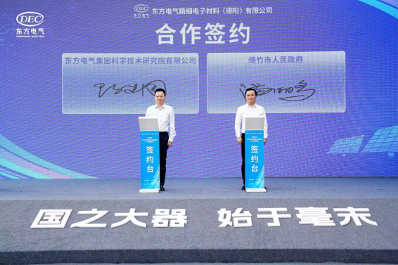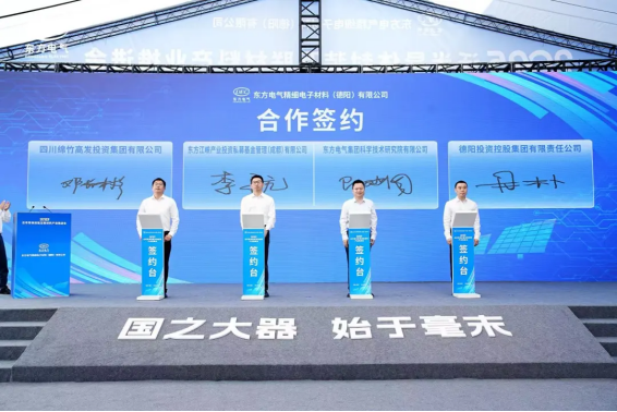 会上,,,,,,,,东方精材划分与无锡帝科、杭州华光签署合作协议,,,,,,,,绵竹市政府与东方研究院签署合作协议,,,,,,,,东方江峡工业投资、德阳投资控股集团、四川绵竹高发投资集团、东方研究院签署合作协议,,,,,,,,江苏瀚思瑞与四川绵竹高新手艺工业园区签署合作协议。。。。。。。