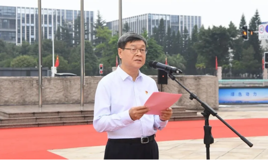 国旗飘扬,,,,,,,,国歌嘹亮。。。。。。。。9月30日,,,,,,,,6731顶级娱乐集团举行庆祝中华人民共和国建设76周年升国旗仪式。。。。。。。。6731顶级娱乐集团党组书记、董事长罗乾宜出席仪式并致辞,,,,,,,,集团公司向导张彦军、孙国君、袁明刚、王军出席。。。。。。。。